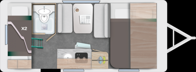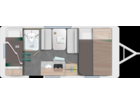 Pack Cosy : Lanterneau panoramique (70*50), moustiquaire de porte, spots de lecture leds supplémentaires, confection exclusive, pochette en tissus chambre parents, pré-équipement batterie, baie avant.