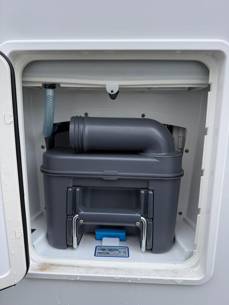 Pack Shower : Support douchette, douchette, rideau de douche, réservoir d'eau 50L, réservoir eaux usées 30L, chauffe-eau 5L.